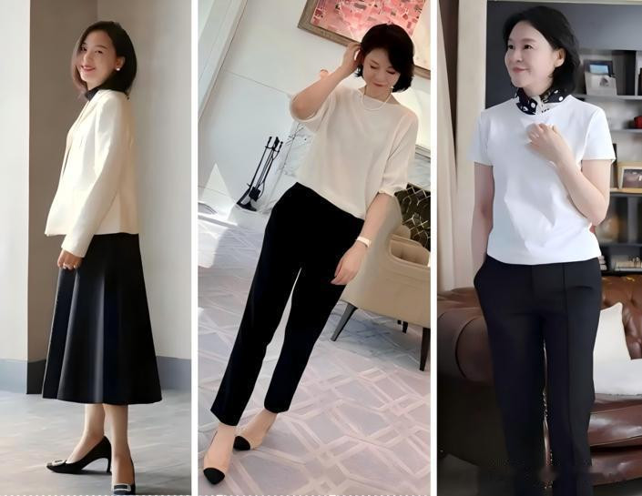 不喜欢有太多颜色的干扰,想要穿得“素雅”一些,那么白色的上衣搭配黑色的裤子或者裙子,一样能够穿出气质感来。一件白色小西装搭配着半身裙,或者一件雪纺衫搭配小脚裤,尤其是那种九分铅笔小脚裤,一定要选择黑色的,素雅又有高级感的搭配,怎么能不叫人喜欢。